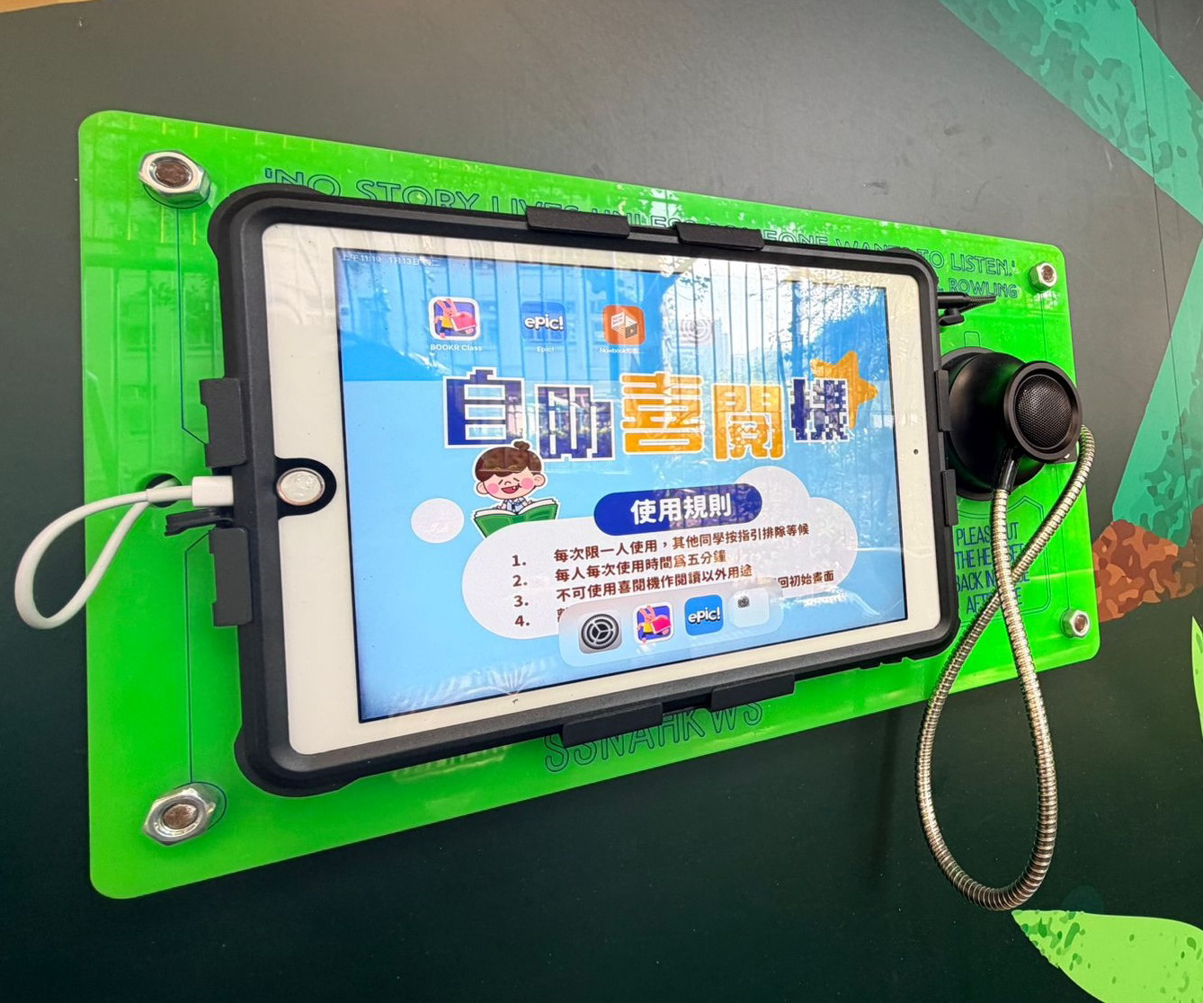 本項目將原為倉庫的後巷,改造為配備自助閱讀機的「恐龍叢林」主題閱讀花園。學生可在此空間借閱書籍,並在沉浸式的環境中參與各類閱讀活動。